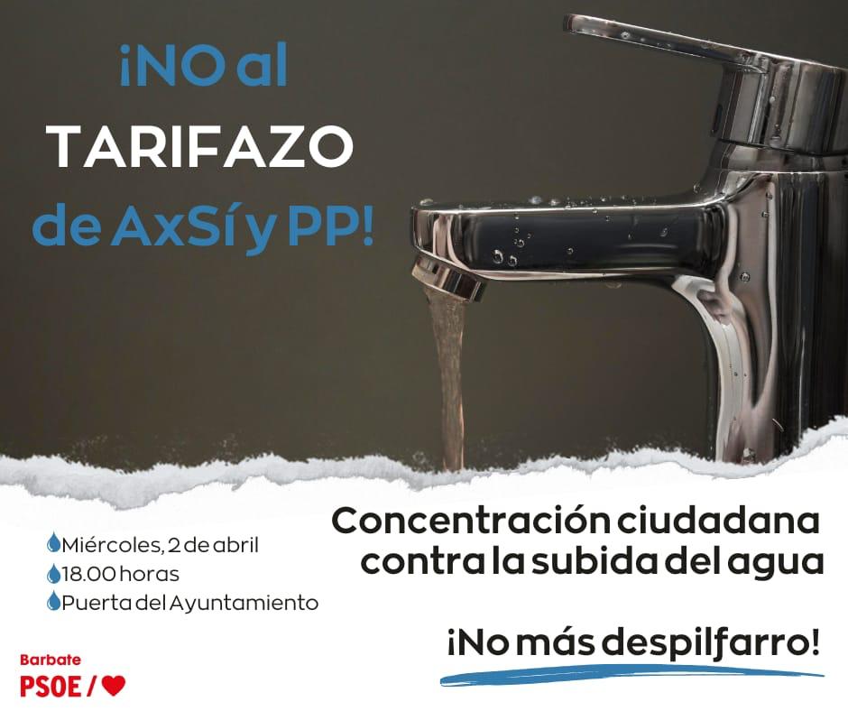 El PSOE de Barbate ha anunciado una nueva fecha para la concentración en contra de la subida de la tasa del agua, prevista inicialmente para el 5 de marzo y aplazada por las inclemencias meteorológicas. La protesta se llevará a cabo el próximo miércoles 2 de abril a las 18:00 horas frente al Ayuntamiento, en respuesta a la reciente publicación en el Boletín Oficial de la Provincia de la aprobación inicial de las ordenanzas que incrementan el precio del agua.