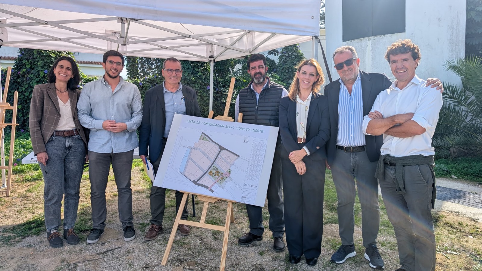 El Ayuntamiento de Conil ha asistido en el día de hoy al acto de colocación de la primera piedra y firma del Acta de Inicio para las obras de la urbanización “Conilsol Norte”. A este momento han asistido la alcaldesa de Conil, Inmaculada Sánchez; el delegado de Urbanismo y representante del Ayuntamiento en la Junta de Compensación de ConilSol Norte SLC-4, Pedro Pérez; el primer teniente de alcaldesa, Antonio Aragón, y la delegada de Hacienda, Susana Bermúdez, así como una representación de la promotora, constructora y propietarios.