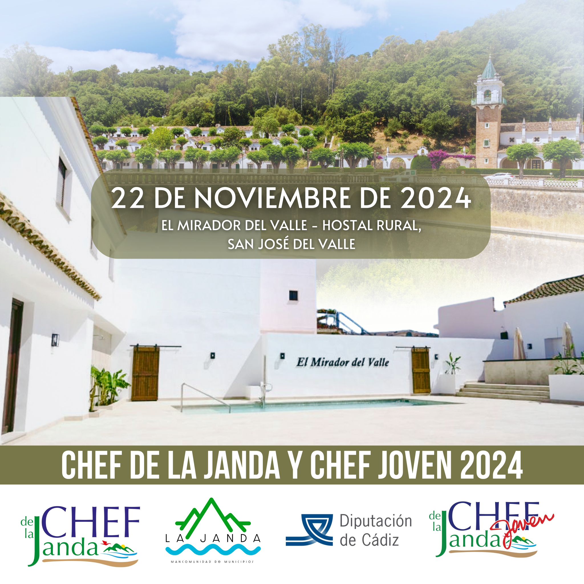 Las finales de la IV edición del Chef de La Janda y la III edición del Chef Joven de la Janda tendrán lugar en la localidad de San José del Valle este viernes, 22 de noviembre de 2024. El lugar elegido para el evento es el ‘El Mirador del Valle – Hostal Rural’.