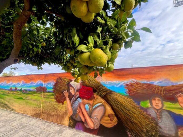 El artista barbateño Hoko ha sido el encargado de plasmar el trabajo de las mujeres vallenses y sus paisajes en esta obra enmarcada dentro del proyecto de la Mancomunidad de La Janda que continuará en el resto de municipios de la comarca