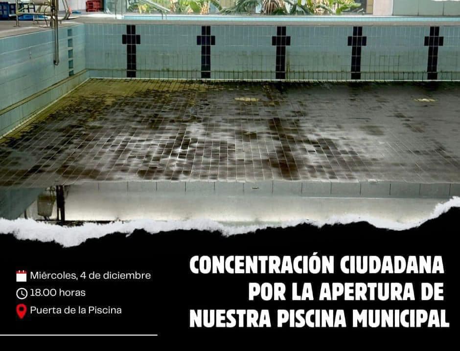 A continuación, la protesta se trasladará a la puerta del Ayuntamiento, prevista para las 19.00 horas, donde los colectivos volverán a poner de manifiesto el estado de la piscina y recalcarán la falta de servicios públicos y el estado de otros edificios municipales como es el caso de la Lonja Vieja, actualmente cerrada también.