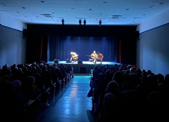 Barbate, Medina Sidonia y Conil han sido testigos de este encuentro entre el virtuosismo musical de la guitarra de Nono García y el saxo de Pablo Hernández, y el actor y poeta Sergio Román.