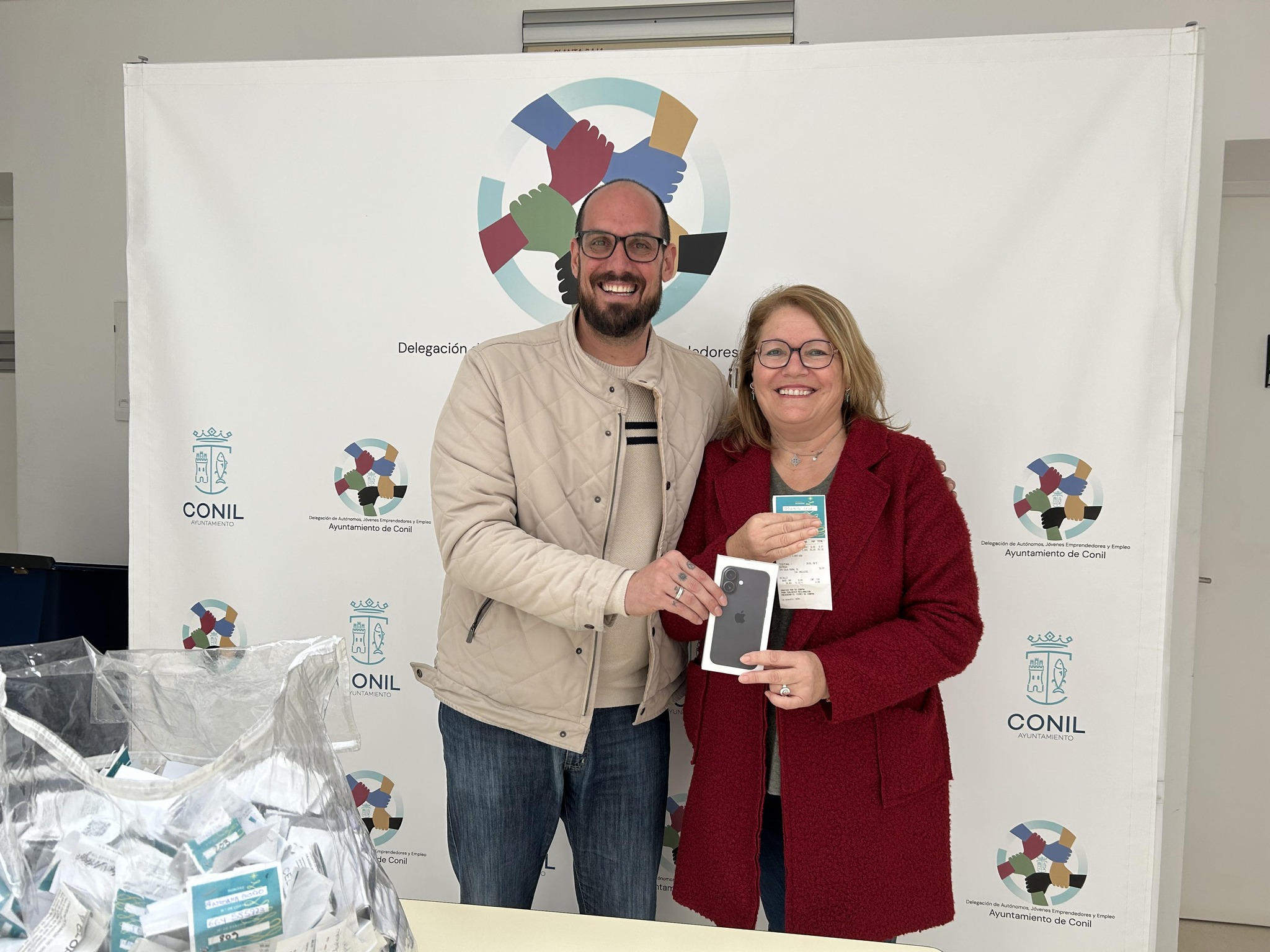 Una vez finalizada la intervención del edil se ha procedido al sorteo del Iphone 16, cuya agraciada ha sido Petronila Leal una compra realizada el día 20/12/2024 en Maragón por valor de 33.91 euros.