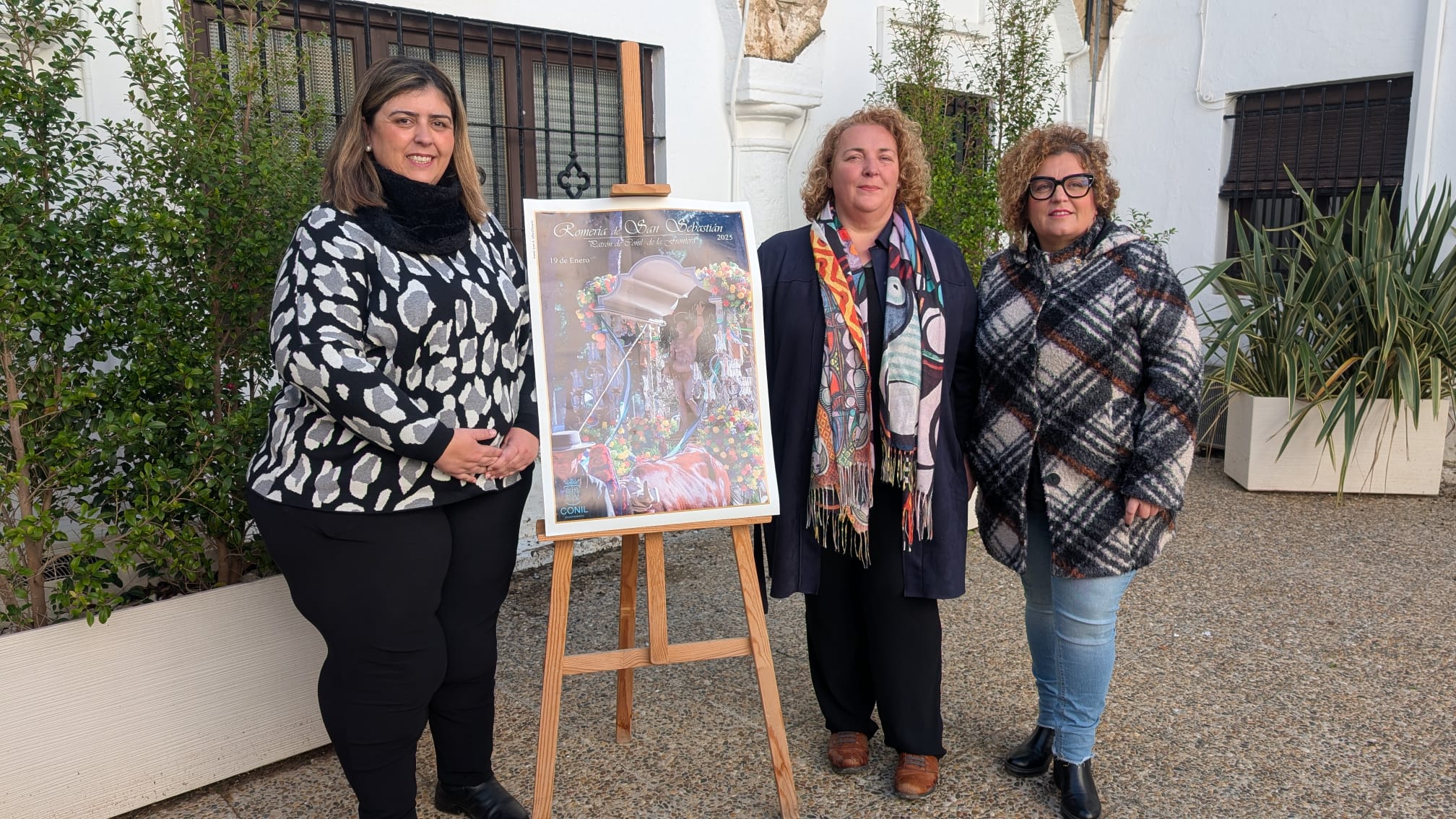 El Ayuntamiento de Conil ha dado a conocer el cartel anunciador de la próxima Romería de San Sebastián 2025, una festividad que se llevará a cabo el próximo día 19 de enero. En la presentación de este cartel han estado presentes la delegada de Fiestas, Catalina Almazo, la delegada de Seguridad, Antonia Alba, y la alcaldesa, Inmaculada Sánchez. El cartel anunciador de la romería es obra de José Antonio Alba “Fleki”.