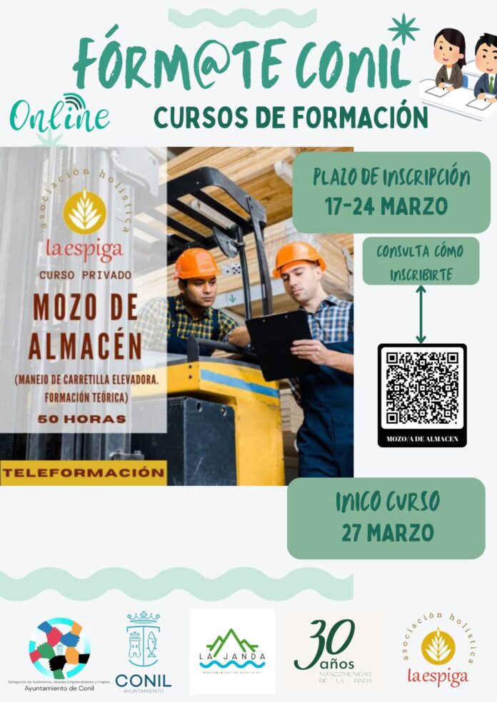 El segundo teniente de alcadesa y responsable del área de Autónomos, Jóvenes Emprendedores y Empleo del Ayuntamiento de Conil de la Frontera, Sergio Cáceres ha informado de la apertura del plazo de inscripción del curso Mozo/a de Almacén incluido en el programa “FÓRM@TE CONIL”.