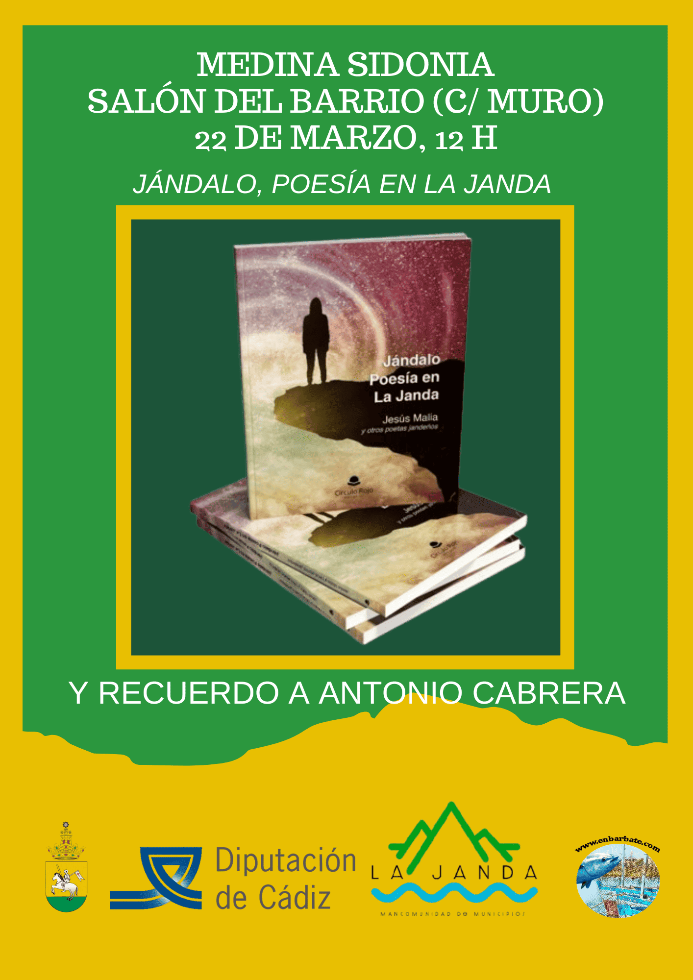 Este sábado 22 de marzo, Medina Sidonia acogerá la presentación oficial de Jándalo. Poesía en La Janda, una obra colectiva que ya se encuentra disponible en librerías y que reúne a 17 poetas, hombres y mujeres, de cada municipio de la comarca. El acto estará presidido por Javier Rodríguez, presidente de la Mancomunidad de Municipios de La Janda, entidad patrocinadora del proyecto.