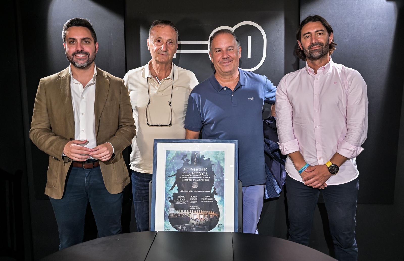 El cartel de la 52ª edición de la “Noche Flamenca” de Vejer ya es oficial. Se ha presentado en los estudios de ExpoFlamenco, en Jerez de la Frontera, uno de los festivales más destacados del verano gaditano, que tendrá lugar el próximo 23 de agosto en el incomparable entorno de las Murallas de la Segur.