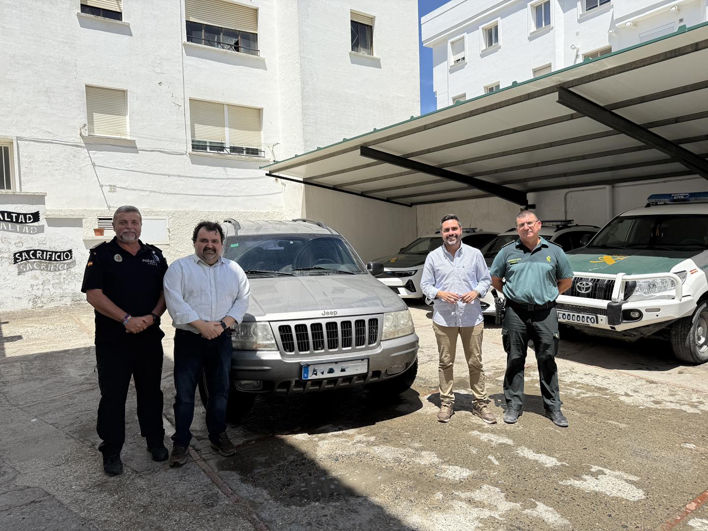 La Policía Local de Vejer cuenta desde hoy con un nuevo recurso para reforzar sus tareas de vigilancia y seguridad ciudadana. Se trata de un Jeep de gran cilindrada que ha sido cedido al Ayuntamiento tras una intervención judicial, fruto de la cooperación entre el Consistorio, la Guardia Civil y el Juzgado competente.