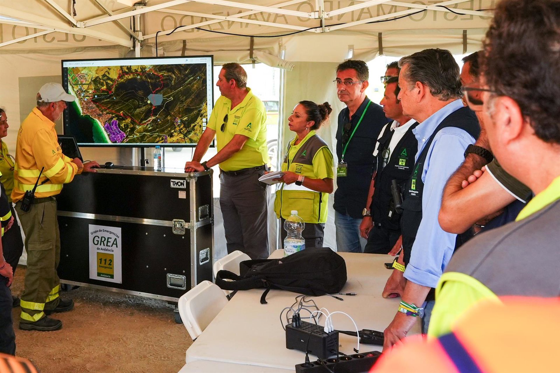 El consejero de la Presidencia, Interior, Diálogo Social y Simplificación Administrativa, Antonio Sanz, ha informado desde el Puesto de Mando Avanzado en Zahara de los Atunes de que continúan desplegados más de 200 efectivos del Plan Infoca y Bomberos de la provincia. En la actualidad, persisten tres focos activos en el flanco derecho del incendio, que se mantiene “vivo y virulento”.