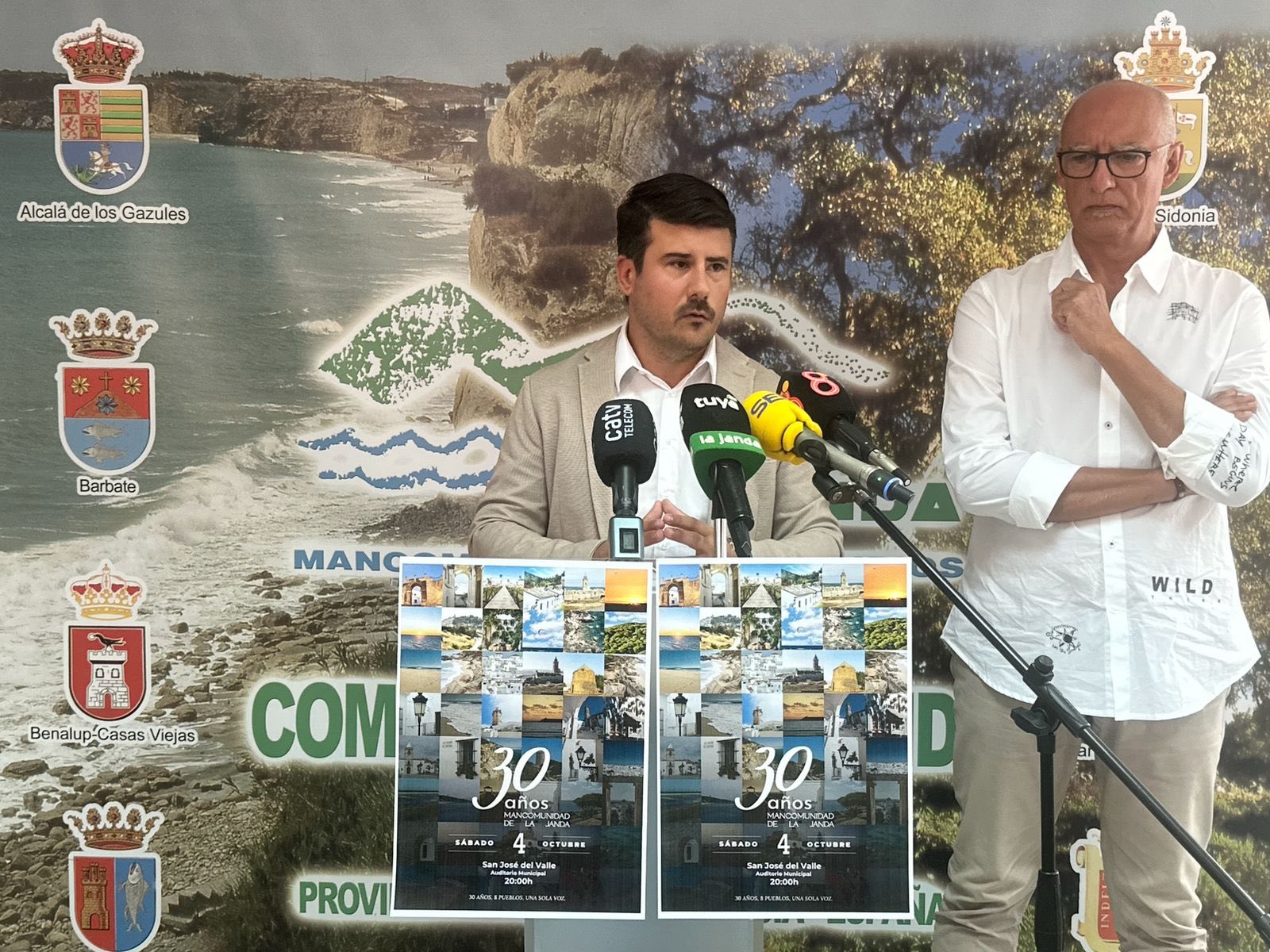 La sala de juntas de la Mancomunidad de Municipios de la Comarca de la Janda, en Medina Sidonia, acogió la presentación del cartel anunciador del 30º aniversario del ente comarcal. El acto contó con la presencia del presidente, Javier Rodríguez, y del vicepresidente, Francisco Guerrero.