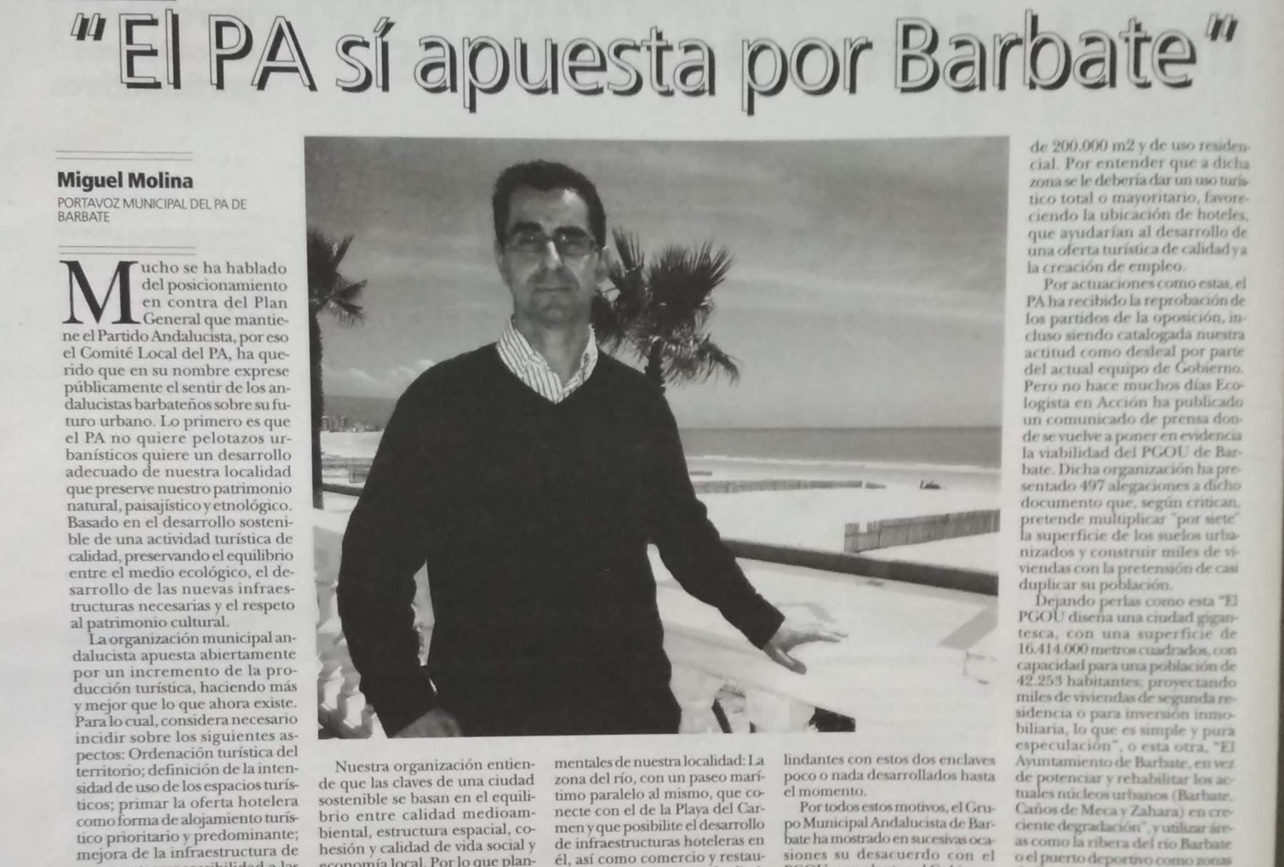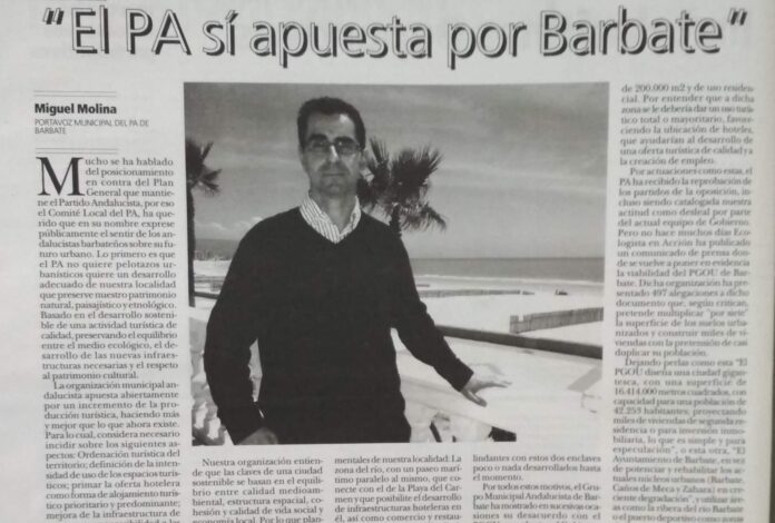 La organización recuerda que en 2013, cuando Molina era portavoz del Partido Andalucista en la oposición, rechazaba el PGOU de aquel momento por estar basado en “criterios especulativos” y por proyectar “miles de viviendas de segunda residencia o para inversión inmobiliaria”. En aquel entonces defendía un modelo turístico sostenible, centrado en la calidad hotelera y en los suelos ya previstos, y rechazaba los macroproyectos dispersos por todo el término municipal.