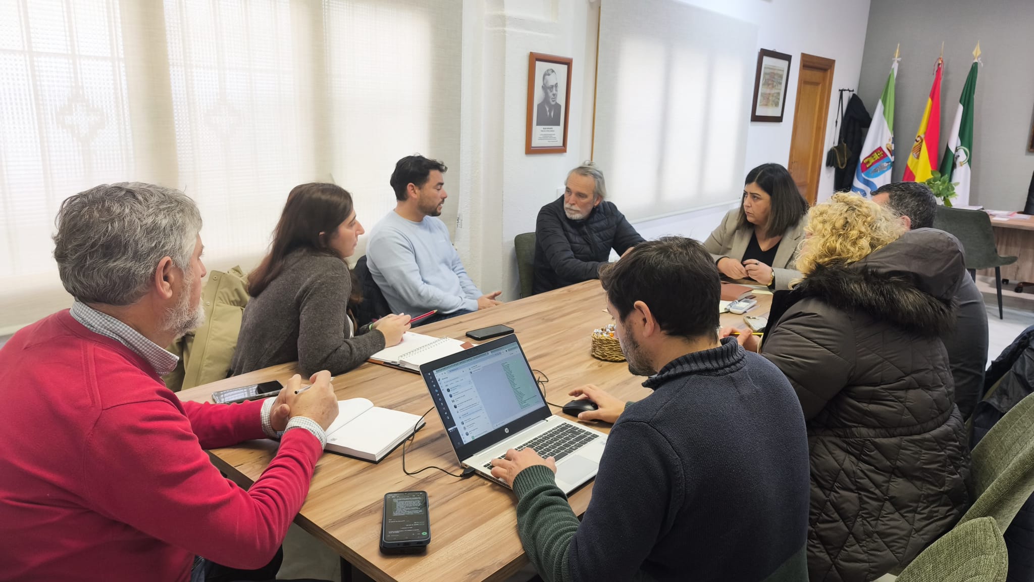 Esta mañana se ha celebrado una reunión de coordinación presidida por la alcaldesa, Inmaculada Sánchez, con las áreas municipales de Servicios, Playas, Seguridad, Movilidad y Campo y Monte Público y Participación Ciudadana para analizar las actuaciones inmediatas tras los efectos del temporal en calles y carriles del municipio.