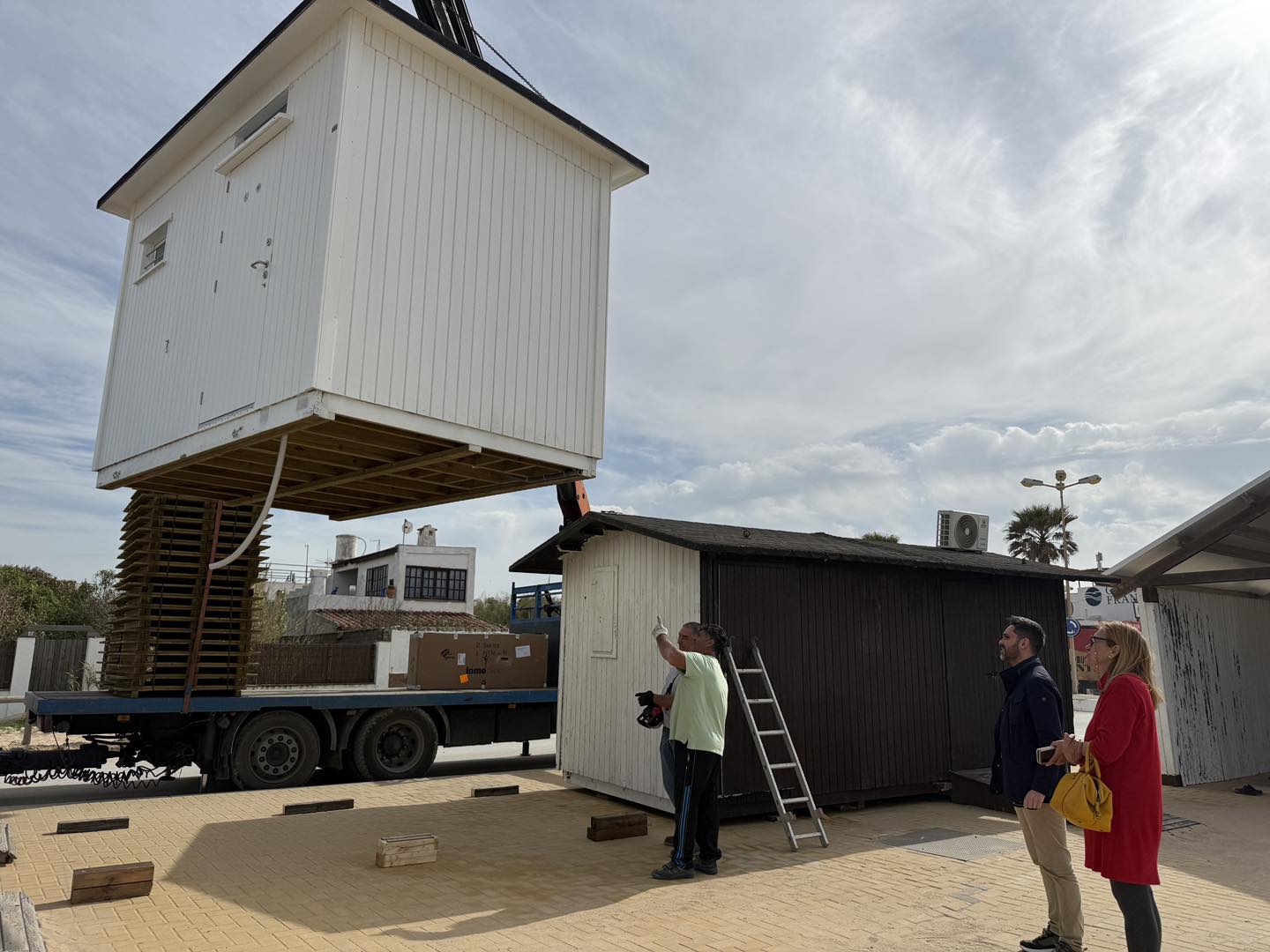 El alcalde de Vejer, Antonio González, junto a la concejala de Playas, supervisaron la llegada de los nuevos módulos, constatando la implementación de esta inversión municipal. La dotación incluye también nuevas pailas para facilitar la reposición de pasarelas y palos redondos para el mantenimiento del cerramiento perimetral que protege el sistema dunar, reforzando la conservación medioambiental.